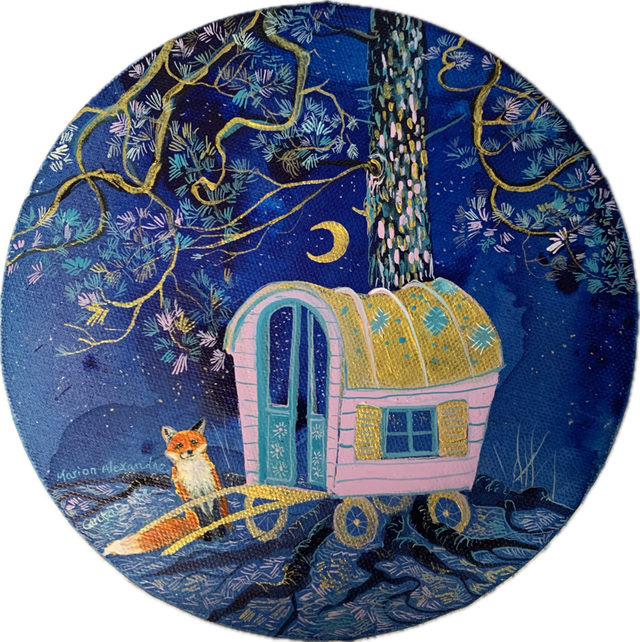 Grande Carte ronde Roulotte rose 20 cm de diamètre